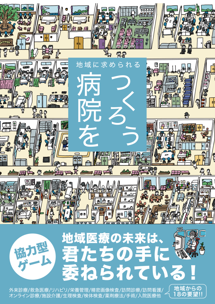 ボードゲーム「病院をつくろう」は、医療機関経営の意思決定を疑似体験できるシミュレーション型のシリアスゲームです。参加者は、医療機関の経営者として次のような意思決定を行いながら、変化する外部環境の中で医療機関の持続可能性を高めていきます。